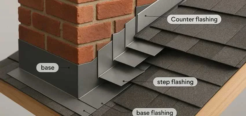 Step flashing tucks under each shingle course along the chimney sides. Counterflashing locks into mortar joints and overlaps those steps. In Amberwood Farms, Prosper the overlap must be precise to block wind-driven rain. We avoid shortcuts like exposed face-nailing that can loosen and leak later.