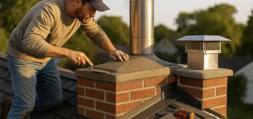 A sloped crown with a drip edge, well woven flashing, and a cap sized to the flue keep water out of attics and walls in Amberwood Farms, Prosper. This stops recurring stains and musty odors at the hearth.