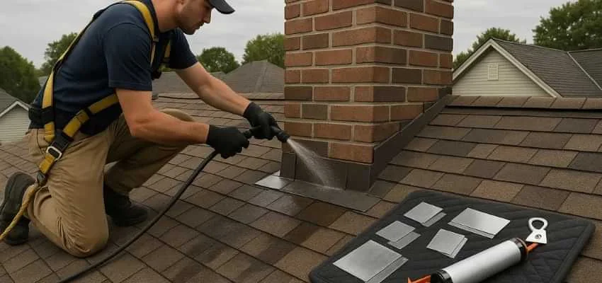 We examine crown slope, cap fit, mortar joints, brick or stone surfaces, and flashing transitions at the roofline. In Lilyana, Prosper this area is often the origin of leaks.
